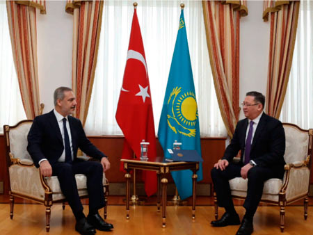 Казахстан и Турция намерены увеличить перевозку грузов через Транскаспийский международный транспортный коридор. Об этом сообщил глава внешнеполитического ведомства РК Мурат Нуртлеу по итогам встречи с министром иностранных дел Турции Хаканом Фиданом.